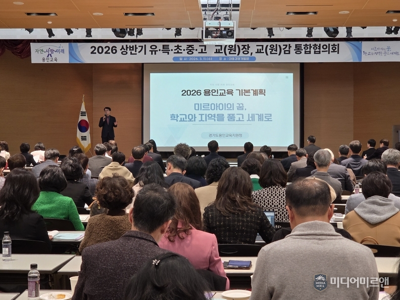 용인교육지원청은 11일 대웅경영개발원에서 관내 유치원과 초·중·고, 특수학교 교장·교감이 참석한 가운데 ‘2026 상반기 교(원)장·교(원)감 통합협의회’를 개최했다고 밝혔다.