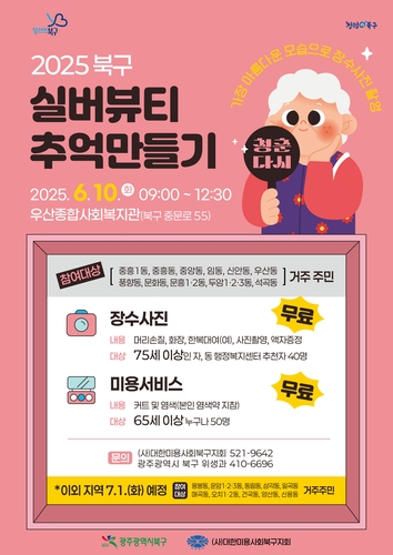 이번 사업은 어르신들이 현재의 아름다운 모습을 간직할 수 있도록 '미용 서비스'와 '장수사진 촬영'을 지원하는 사업으로 북구가 구비 1천만 원을 투입해 올해 처음 추진하는 정책이다.