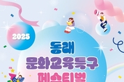부산 동래구(구청장 장준용)는 오는 7월 4일부터 5일까지 양일간 동래문화회관 일원에서 '배우고 놀고 문화 속으로! 2025 동래문화교육특구 페스티벌'을 개최한다고 밝혔다. 이번 행사는 진로·청소년 교육, 독서교육, 영유아교육, 평생학습과 복지박람회 등 4개 체험존, 54개 부스로 구성되며, 풍성한 참여 프로그램과 공연 9종, 2개 문화 프로그램이 펼쳐진다. 축제의 시작을 알리는 개막식은 사직여중 '씽어쏭파이터' 합창단의 무대와 '슈팅스타' 치어리딩 공연으로 시작될 예정이며, 청소년 10개 팀이 참여하는 무대 경연과 인기 초청가수'싸이버거'의 공연은 젊은 세대의 큰 호응이 기대된다. 물총 미션3 챌린지, 워터 페달보트, 미니카 빵빵 등 오감을 자극하는 놀이형 체험도 마련돼 가족 단위 방문객들의 발길을 사로잡을 것으로 보인다. 또한, 지역 학교가 참여하는 예술 무대도 풍성하다. 온샘초의 난타 공연, 유락여중의 가야금 연주, 충렬중 밴드의 열정적인 무대가 마련돼 있으며, 동래나래 어린이 영어 합창단과 동래구 어린이 영어 뮤지컬단의 CATS(캣츠) 버스킹 공연은 지역 영어 문화교육의 현주소를 보여줄 예정이다. &n